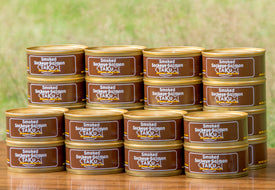 Our popular can line of smoked wild Alaskan salmon offers Sockeye, Red King Salmon, Coho and Pink. The cans are perfect for spreads and are great to include in recipes. The cans do not need refrigeration until opening, so you can keep them in the pantry.