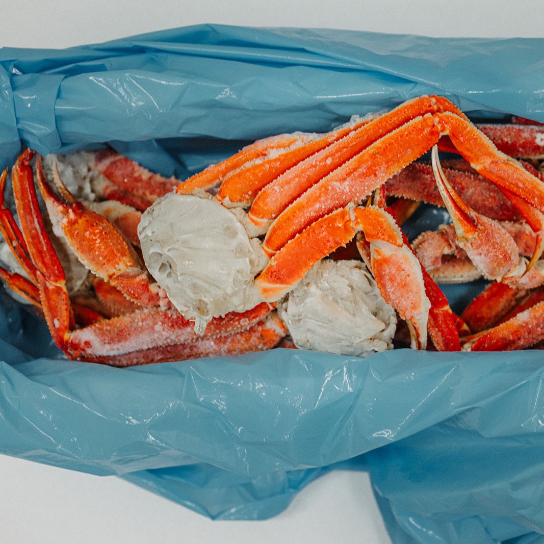 Snow Crabs thrive in the cold, deep waters of the Bering Sea and Gulf of Alaska, typically at depths of 300–600 feet. They’re harvested using large-scale pot fisheries operating under some of the strictest quotas in the world to ensure sustainable population levels. While most Snow Crab is landed in Western Alaska, a select portion reaches our docks in Juneau via long-haul tenders. These tenders maintain freezing temperatures throughout the journey to preserve quality. Once received, the crabs are boiled, flash frozen, and glazed to ensure they arrive at your door just as sweet and flavorful as when they left the water.