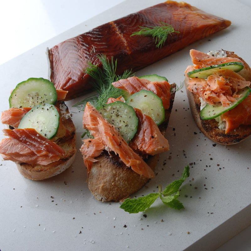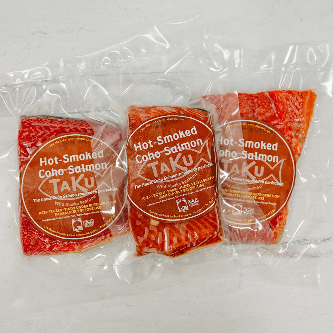 Made with the ancient and traditional art of Hot Smoking these Coho pieces are infused with the rich smoke of alder wood. We use only the best Coho salmon caught wild in the nearby inside Passage of Alaska in our smokehouse. This smoked Coho can stand alone as an amazing snack or mixed with cream cheese and spices to create the perfect salmon spread.