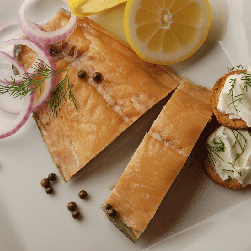 Also known as Chinook, king salmon are prized for their color, high oil content and firm texture. We take this amazing wild caught fish and hot smoke it to perfection over Alder smoke. The finished product is firm and flaky like baked salmon, but with a slightly cured crust and deep smokey flavor.