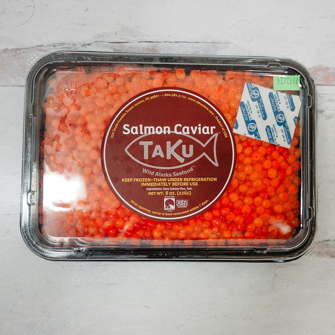 Taku's most famous product our bright red beautiful Alaskan Salmon Caviar. Brined to perfection by our expert team Taku has honed it's Caviar to world class levels.