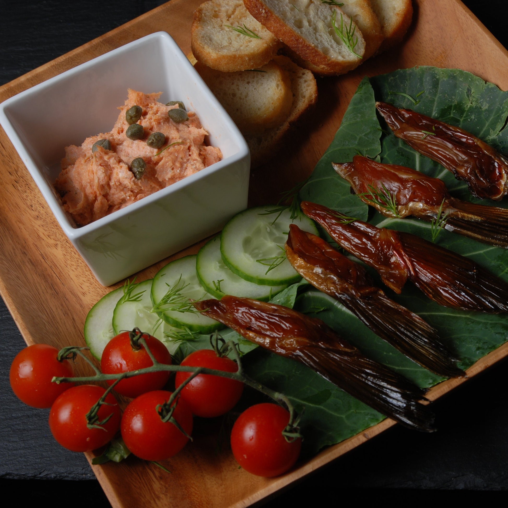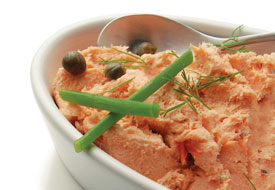 Our smokehouse makes this salmon spread with both our hot and cold smoked sockeye salmon products, cream cheese, and more.